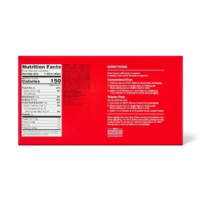 Frozen Garlic Texas Toast from market pantry™ will have you set whether you’re looking for a savory snack or something to accompany a steak dinner. Thick-cut Texas toast is brushed with a delicious crushed garlic spread for taste you’ll love, and it bakes in just eight minutes for a quick option. Simply pop it in a conventional oven or a toaster oven to get crisp, garlic Texas toast, then enjoy the Texas toast on its own or dipped in marinara sauce alongside pasta, roasted chicken, grilled steaks and more.