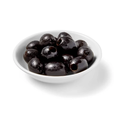 Create tasty salads, pizzas, pastas and more with this can of Medium Pitted Black Olives from market pantry™. This can contains six ounces of medium-size, ready-to-eat delicious olives that are pitted for convenience and free from the eight major types of allergens. They can be enjoyed on their own as a snack alongside nuts and other olives, or added as a topping to a variety of recipes like salads, pizzas, pastas, wraps, sandwiches and more.